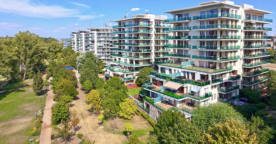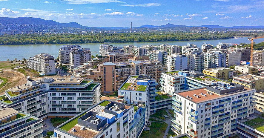 Marina part lakópark a Duna ölelésében. Panoráma, zöld környezet, kiváló közlekedés és modern városi élet egy helyen.